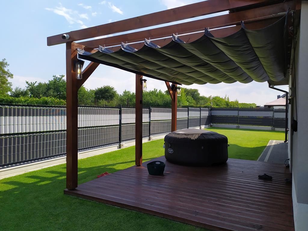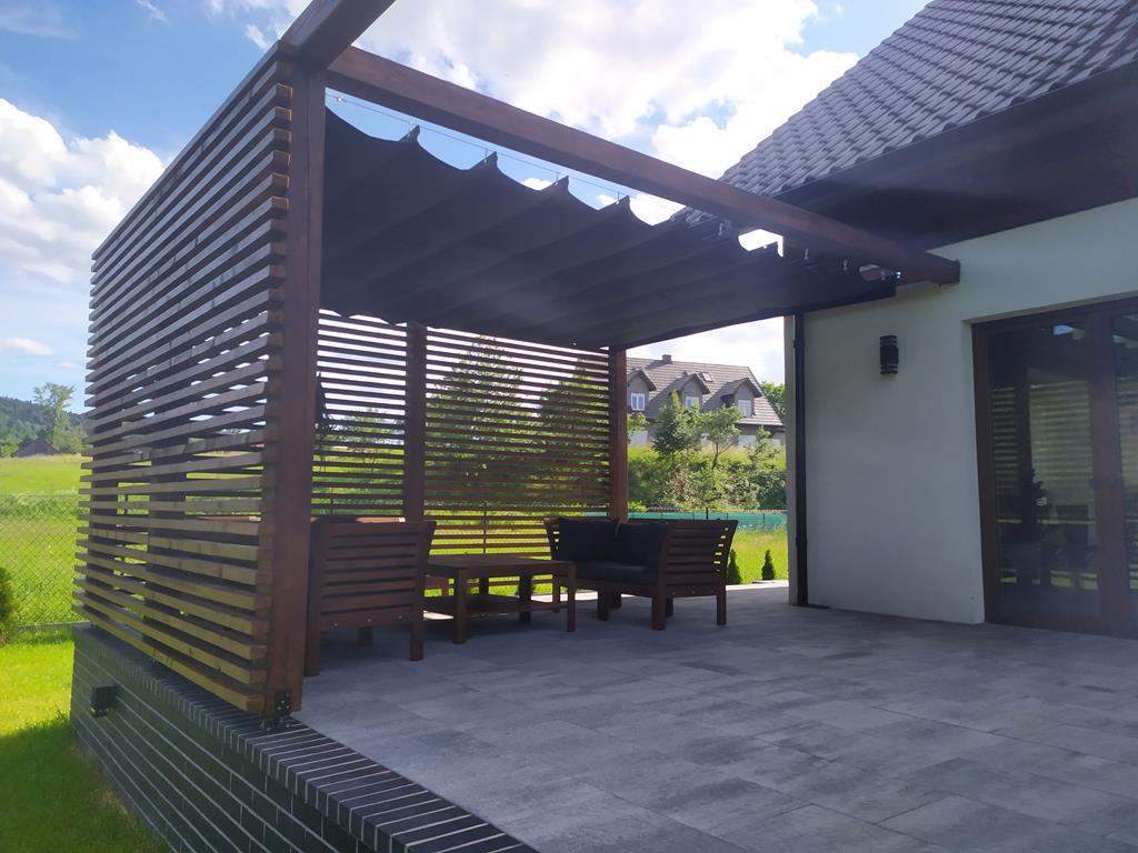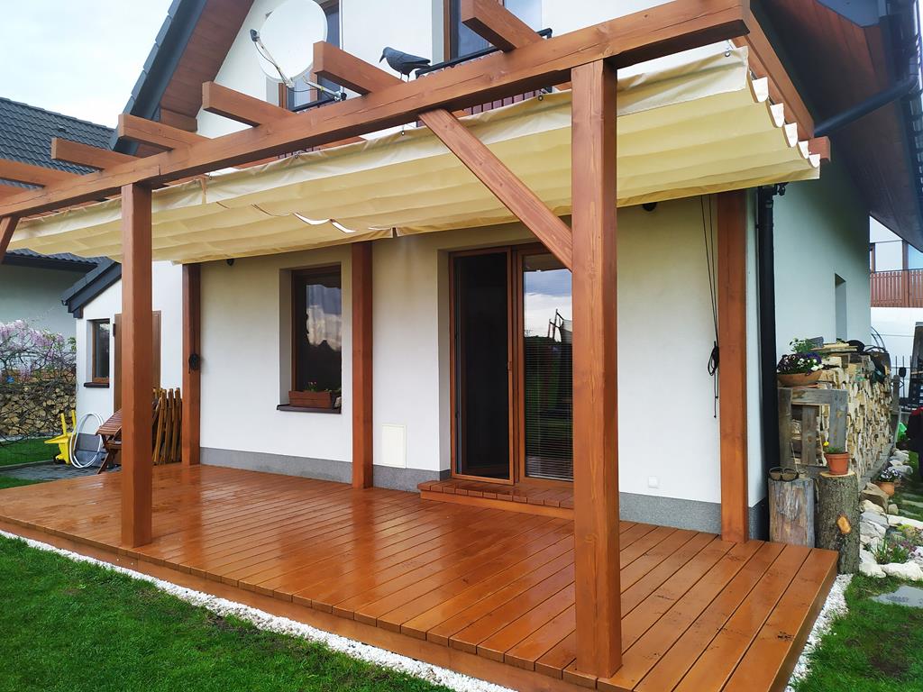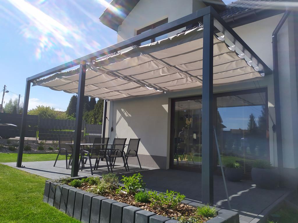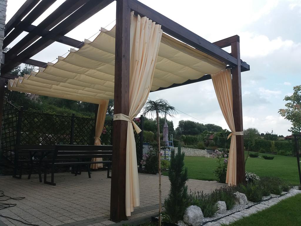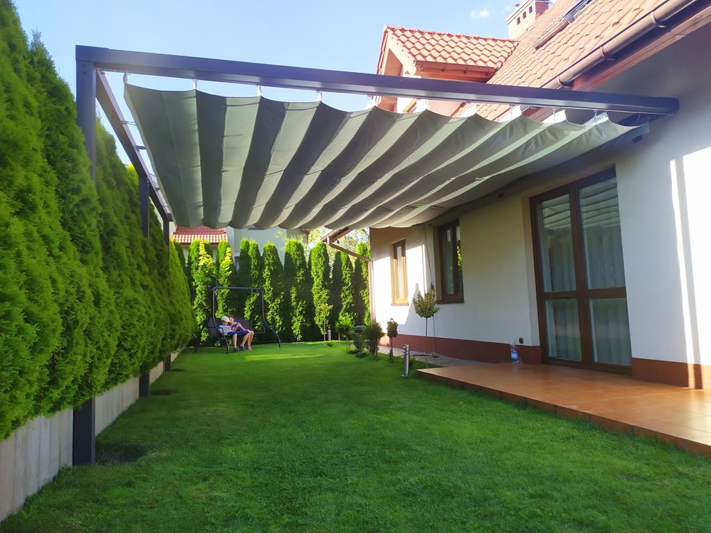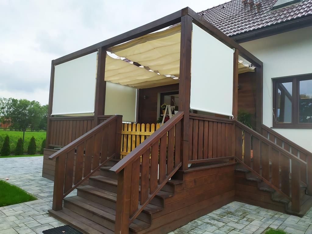 Rolety rzymskie przeznaczone są do pergoli stalowych naszej produkcji, ale również do istniejących już konstrukcji drewnianych, stalowych oraz aluminiowych. Podstawowy materiał do wykonywania rolet chroni przed słońcem oraz niewielkim deszczem ze względu na jego właściwości wodoodporne. W skład rolety wchodzi materiał oraz wszystkie elementy do jej montażu ze stali ocynkowanej. Istnieje możliwość wyposażenia rolety w akcesoria montażowe ze stali nierdzewnej. W przypadku dużych powierzchni zadaszeń oferujemy roletę rzymską na prowadnicach z wózkami jezdnymi.